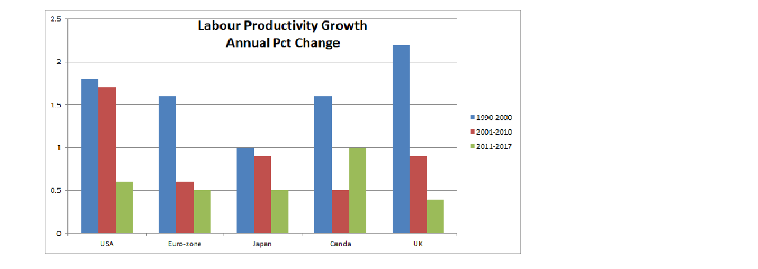 However, a few charts indicate why the tax reform is not likely to boost US potential growth too much. First of all, weak US (and global) growth during this cycle reflects a combination of slow productivity growth and modest increases in the labour force. Chart 6 shows weak productivity gains is a global pattern — in countries with both high and low corporate taxes. Tax reform will help, but only modestly. An aging population accounts for much of the recent decline in labour force participation, which tax cuts won’t change these demographic trends.