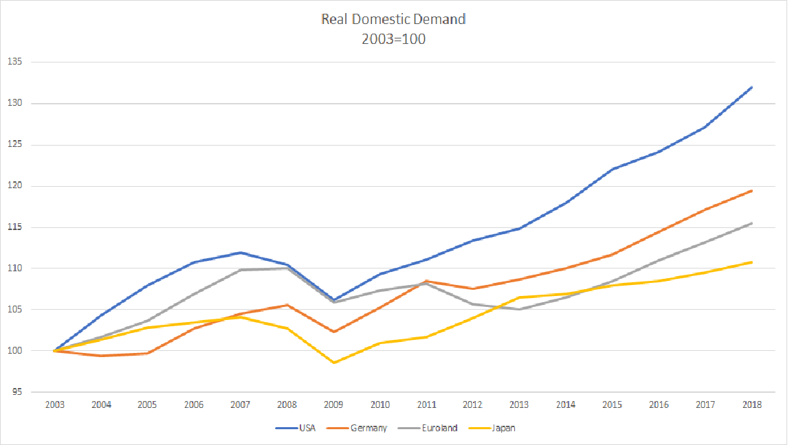 Germany must act more boldly to reduce its unacceptably large current account surplus (through more expansive fiscal policies) in an attempt to avert a transatlantic trade war. Italy, meanwhile, must implement reforms aimed at lifting productivity, which will boost incomes, spending and imports.