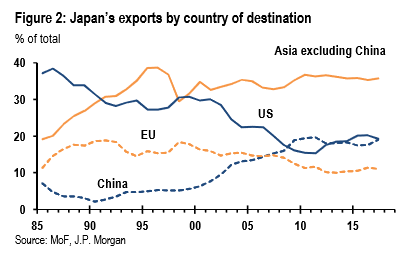 What can we expect? First of all, unlike USMCA partners, Japan will not be pressured to limit its deepening trade ties with China. While exports to China only account for 3% of foreign sales for Mexico and Canada, they represent 20% for Japan. And, the Chart shows China will soon be Japan’s top trading partner.