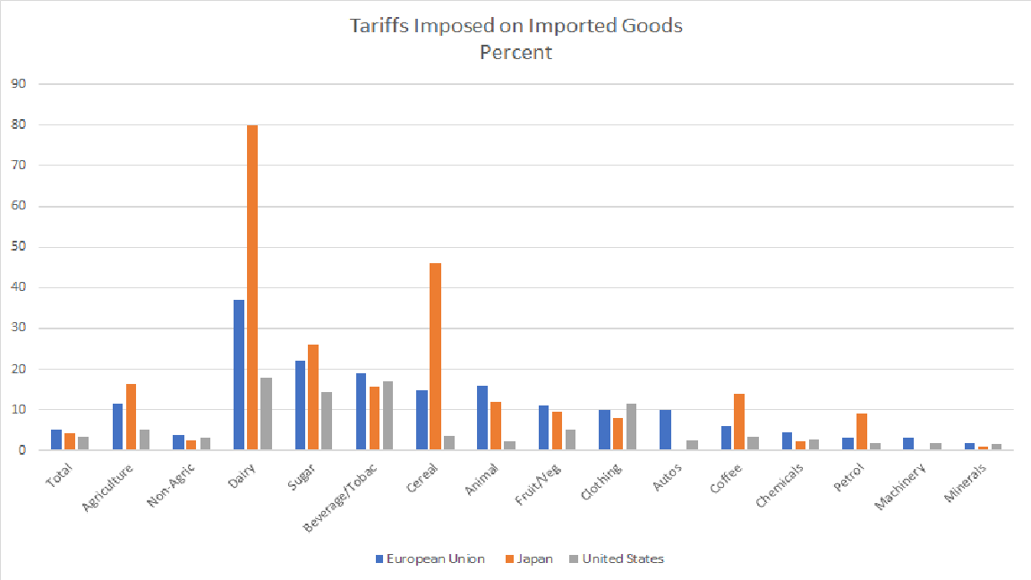 Understandably, the USA will want to focus on automobiles and agriculture. Even though Japan is America’s largest foreign market for agricultural products, and food already accounts for nearly 20% of US sales to Japan, very high tariffs suggest that considerable trade expansion remains possible. While Japan is likely to offer similar concessions provided in its FTA with the European Union, wholesale liberalisation is unlikely.