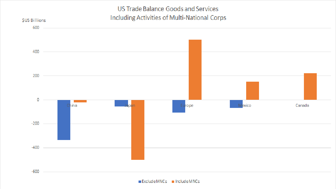 Europe also points out that when the activities of multi-national corporations (MNCs) are included (sales by US firms operating in Europe and EU firms in the USA), the United States actually enjoys a surplus with the European Union!