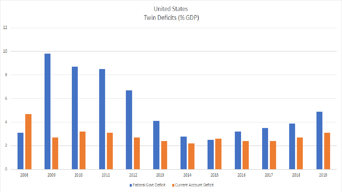 What can we learn from the USMC experience that will help predict the outcome of trade talks elsewhere? First of all, America’s external deficits will not be corrected as long as the Trump Administration continues its focus on bilateral issues, and ignores the macro factors causing the US trade deficit. In particular, America’s external shortfall reflects the nation’s low savings rate, which has been made worse by the rising US budget deficit. In 2018, for instance, despite excellent export performance, America’s trade deficit has widened 15%, as imports have surged. Chart 1 illustrates that the twin deficits are projected to expand in tandem in coming years.