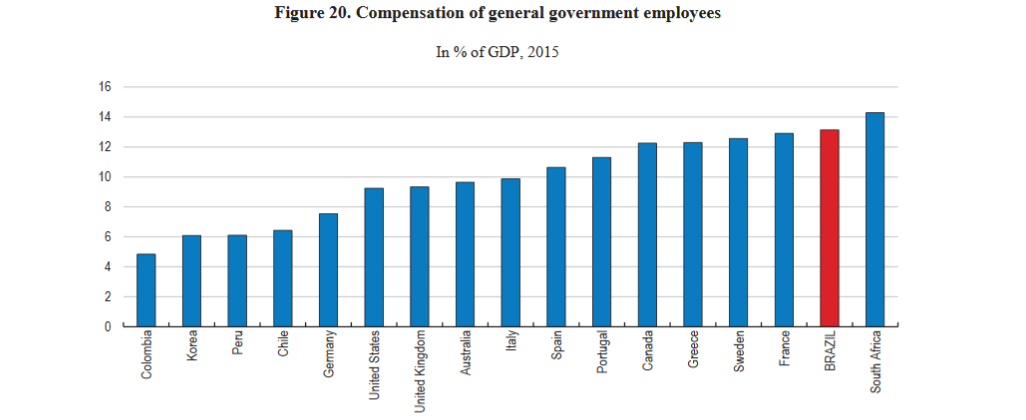 Also, public sector employees tend to earn considerably more than private sector workers. As a result, the burden of public sector pay on Brazil’s budget is amongst the world’s largest. Government sector redundancies and public sector pay cuts may be inevitable.