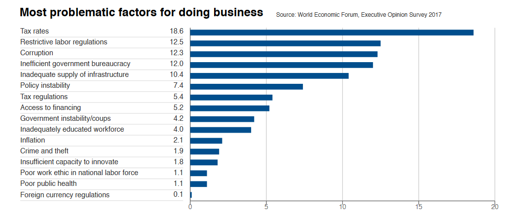 The OECD also estimates that savings amounting 2% of GDP could be achieved by eliminating ineffective industrial subsides and reform of individual and corporate taxation. Indeed, the WEF ranks Brazil 137th — again, dead last! — on the tax code’s adverse impact on providing incentives to both invest and work.