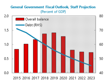 Also, the public sector has played a role in the evolution of Germany’s excessive savings. Between 2000 and 2008, Germany’s budget deficit averaged 2% of GDP annually. The following Chart shows Germany now enjoys a fiscal surplus of roughly 2%. There are many reasons for this huge swing, especially concerns about the fiscal impact of future outlays for an aging population. The shift in public sector savings has played a major role in the expansion in the external imbalance. The Chart also shows that government debt/GDP will decline sharply in coming years. Consequently, stimulative fiscal policy can/should play a central role in correcting the current account problem.