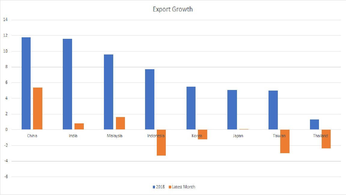 Perhaps even more worrisome, however, is the toll the conflict is already taking on global trade. In particular, the export-led Asian economies have experienced a sharp deceleration/decline in foreign sales in recent months. Unless a resolution is quickly found, economic risks will escalate throughout Asia (Chart above).