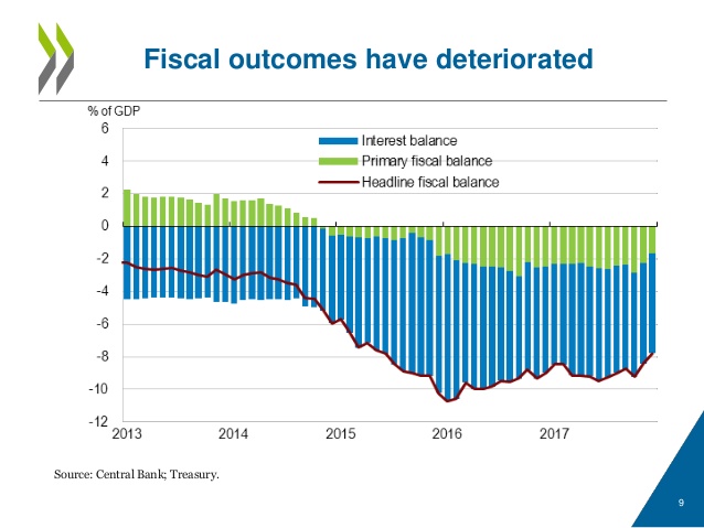Unlike Mexico, Brazil’s lack of fiscal credibility lies at the heart if its problems. However, it has not always been the case. The following Chart shows that during the Naughties (2000s), Brazil consistently ran primary surpluses, and governments debt was declining steadily.