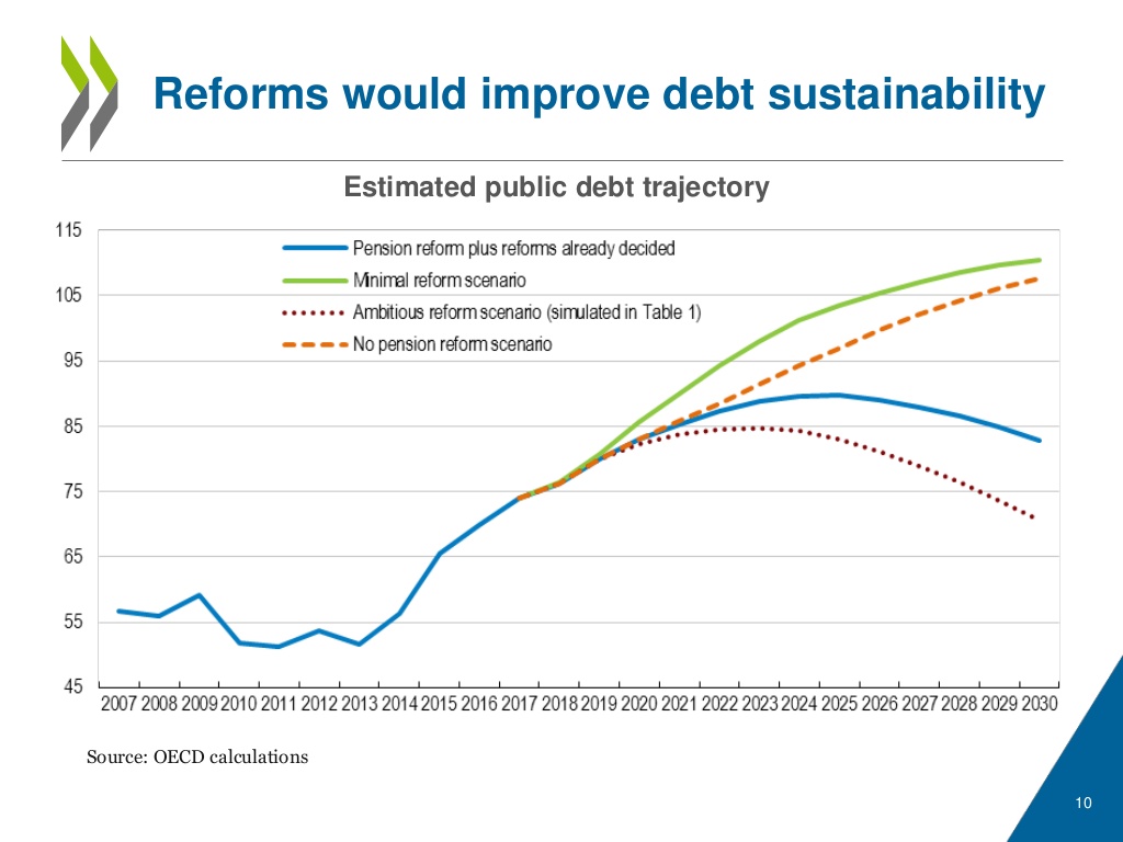 To be sure, these changes are welcome. However, they must represent only the first installment of the necessary budget alterations. Indeed, I estimate additional spending cuts of roughly 2-3% of GDP annually (similar to the scale of the pension savings) are required in order to stabilise the public sector debt ratio. These cuts, however, will be far less politically acceptable, as they will almost inevitably require sharp reductions in public sector compensation.