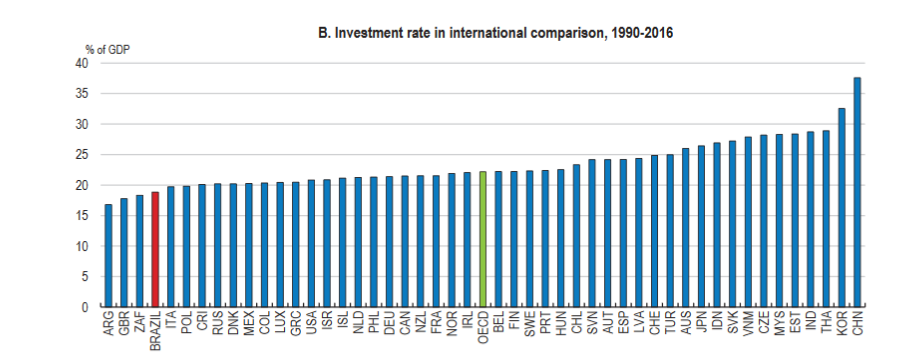 As the earlier WEF Chart highlighted, improvements in the business climate, e.g. reducing government corruption (Brazil ranks dead last when it comes to the public’s trust in politicians, think about that!), crime, and deregulation will be important in order to boost Brazil’s very low-level of business investment.