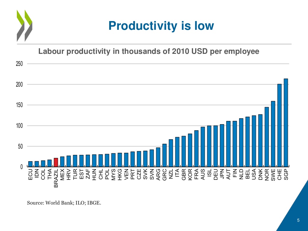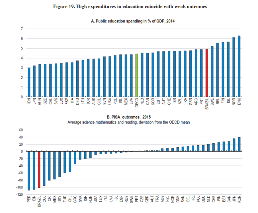 Deep-seated reforms in Brazil’s educational system are needed to boost labour efficiency. In fact, Brazil’s spending on education is relatively high, but this is not reflected in pupils’ performance.