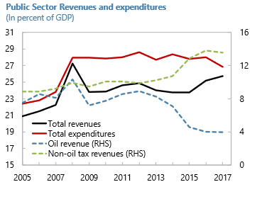 Financial markets have been concerned that the AMLO government’s ambitious spending plans would reverse the recent improvements in Mexico’s public finances. Indeed, AMLO inherited a reasonably healthy position. For example, the overall budget deficit, which ballooned from near balance in 2008 to 4.5% of GDP in 2014, decline to 2.5% of GDP last year. The following Chart also illustrates Mexico’s success in reducing its reliance on oil tax revenues, while boosting non-oil receipts.