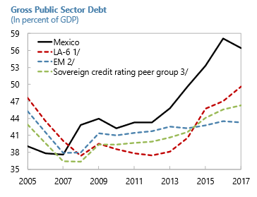As a result, public sector debt (as a percent of GDP), which rose sharply since the Global Financial Crisis, peaked in 2016, and is now on a downward trajectory. And, while Mexican government liabilities remain above other Latin American countries and other EM peers, the debt level is manageable.