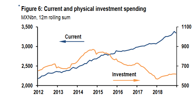 - If AMLO’s fiscal conservatism continues — combining future government spending with higher tax revenues — interest rate reductions of 100 to 150bp could begin late this year or early 2020.
