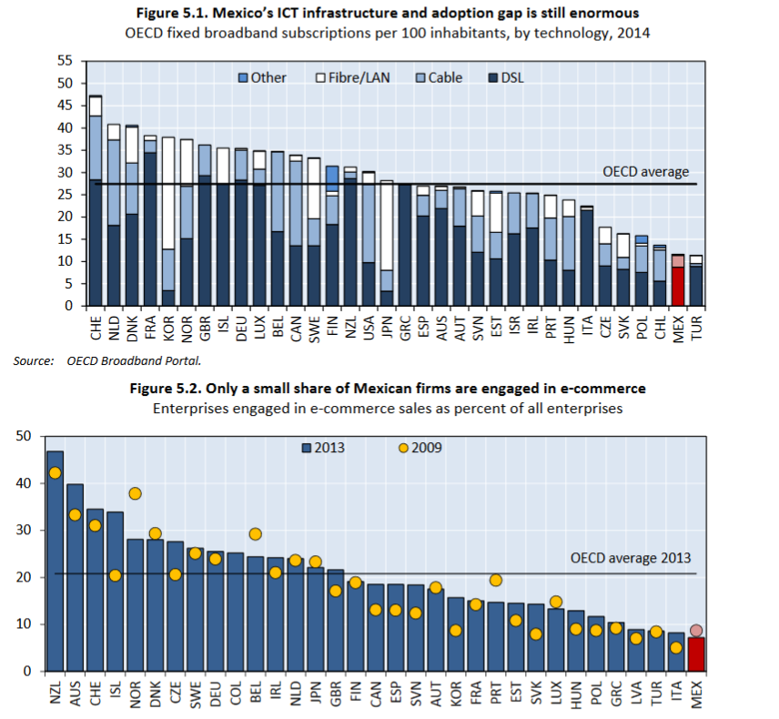 Long-term GDP growth is also hampered by Mexico’s low rate of business investment, which is below the OCED average. The WEF suggests deregulation would help improve the business climate and encourage capital spending (the earlier WEF Chart illustrates the deleterious impact of Mexican regulation relate to EM peers), especially in technology and R&D where Mexico lags significantly (next Chart). The earlier WEF Chart also highlights Mexico’s infrastructure ranks far behind EM peers such as China and Chile. And, while AMLO’s decision to abandon the Mexico City airport project has raised concerns, infrastructure spending (especially in poorer regions of the country) will be a key government spending priority for this Administration.