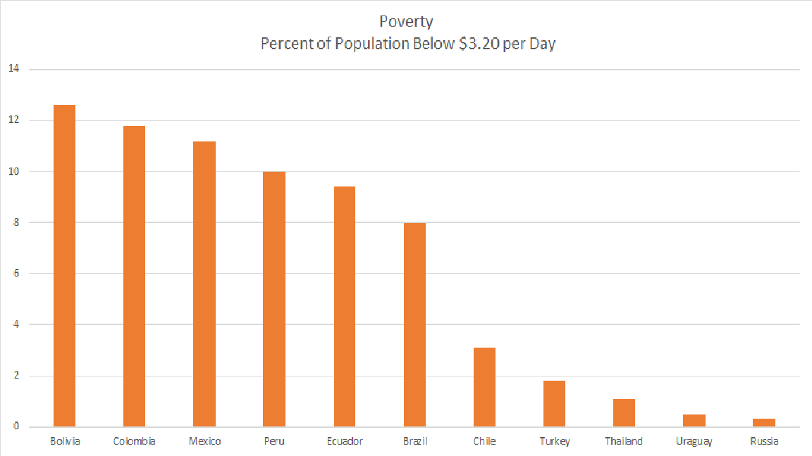 President Bolsonaro also inherits an economy whose long-term GDP growth potential growth has slowed below 2% during the previous chaotic government. Even deeper micro-reforms than in Mexico will be required to reverse this slide, boost Brazil’s very low-level of productivity (next Chart), reduce poverty ,and return Brazil to a path of inclusive economic growth.