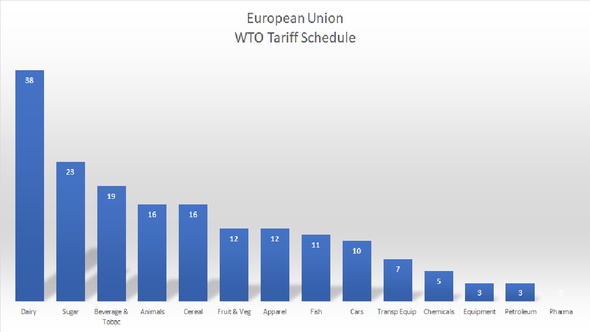 - Advocates of No Deal Brexit will need to confront harsh realities. While the EU is likely to agree to maintain the implementation period through December 2020, WTO tariffs will be applied on 30 March 2019. WTO rules require that all countries without explicit FTAs face the identical EU tariff schedule ( the so-called “Most Favoured Nation” rule). In addition, as Theresa May warned members of Parliament, all possible Brexit outcomes will require an Irish back-stop, including the No Deal option (even if it is unlikely to be utilised).