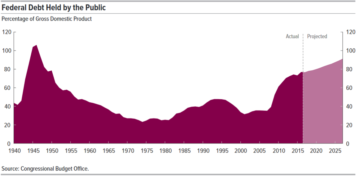 These debt dynamics will have several important implications. First, of all, the promised infrastructure plan is likely to be more modest than needed. Already, the Trump Administration is limiting the Federal government’s contribution to the much heralded $1 trillion program to $200 billion. In addition, the experience of other countries — Japan and Italy for example — illustrate that debt at these levels eventually limits the economy’s long-term growth potential. Furthermore, the prospect of larger deficits (especially at a time when QE is ending) is already leading to higher long-term bond yields.